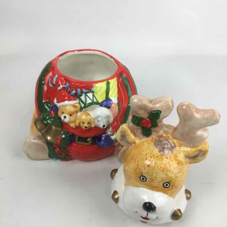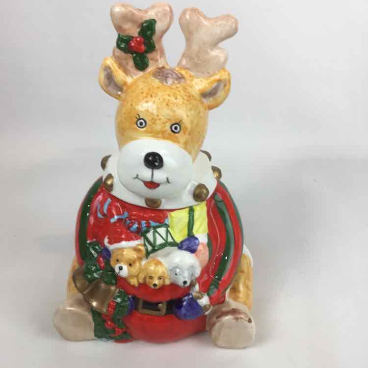 2 Piece Multi Enesco Ceramic Reindeer Cookie jar Christmas Decor