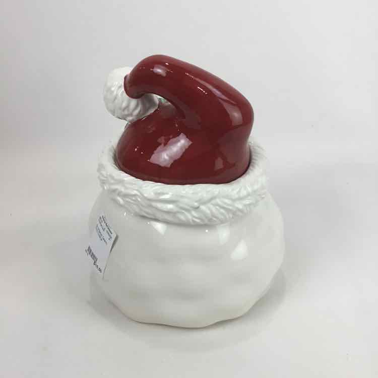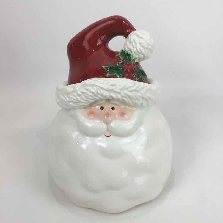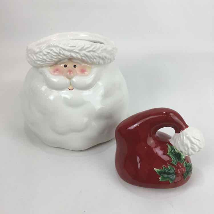 2pc White/red Ceramic Santa Cookie jar Christmas Decor