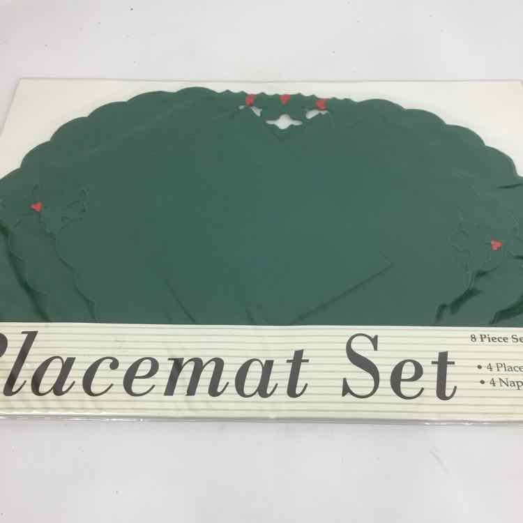 8 Pieces Green/red Cloth Placemats & Napkins NWOT Christmas Decor