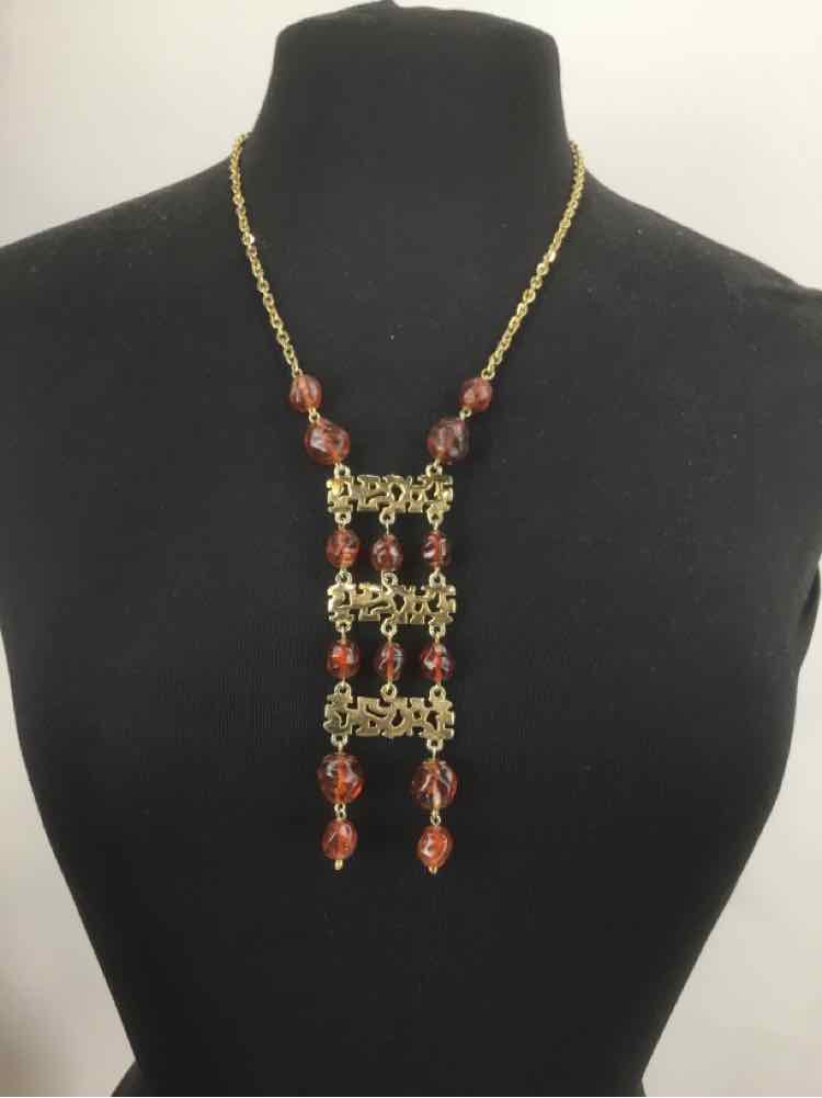 Amber/Gold Beaded Necklace