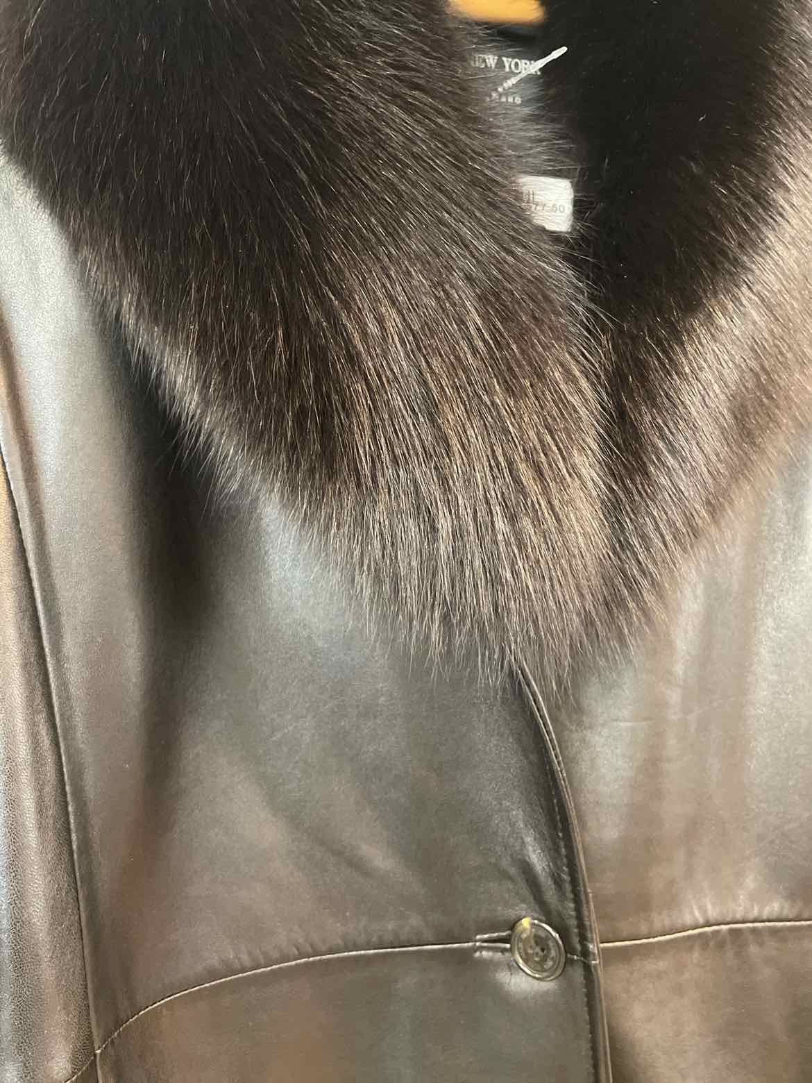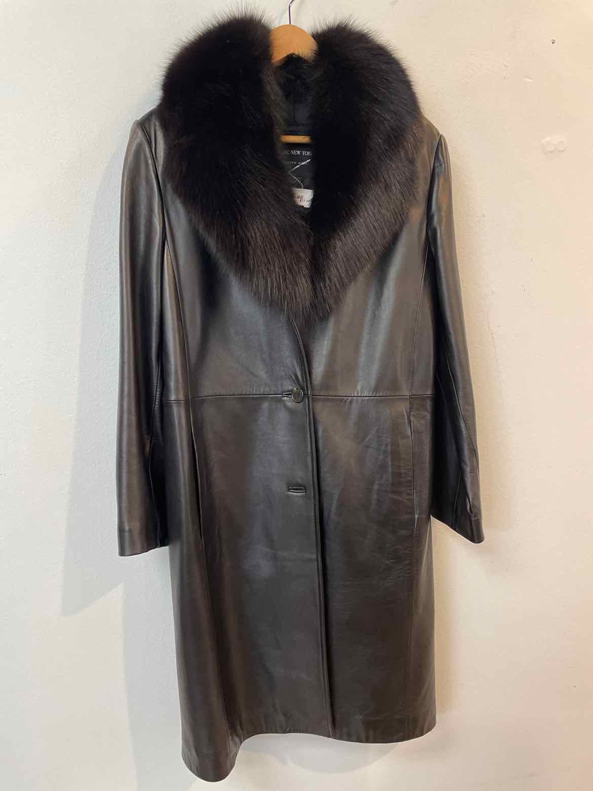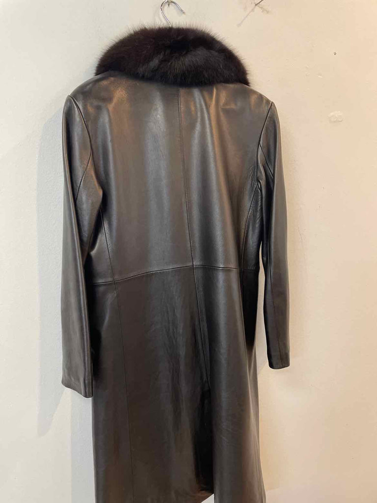 Andrew Marc Size S Black Leather fur collar Knee Length Coat