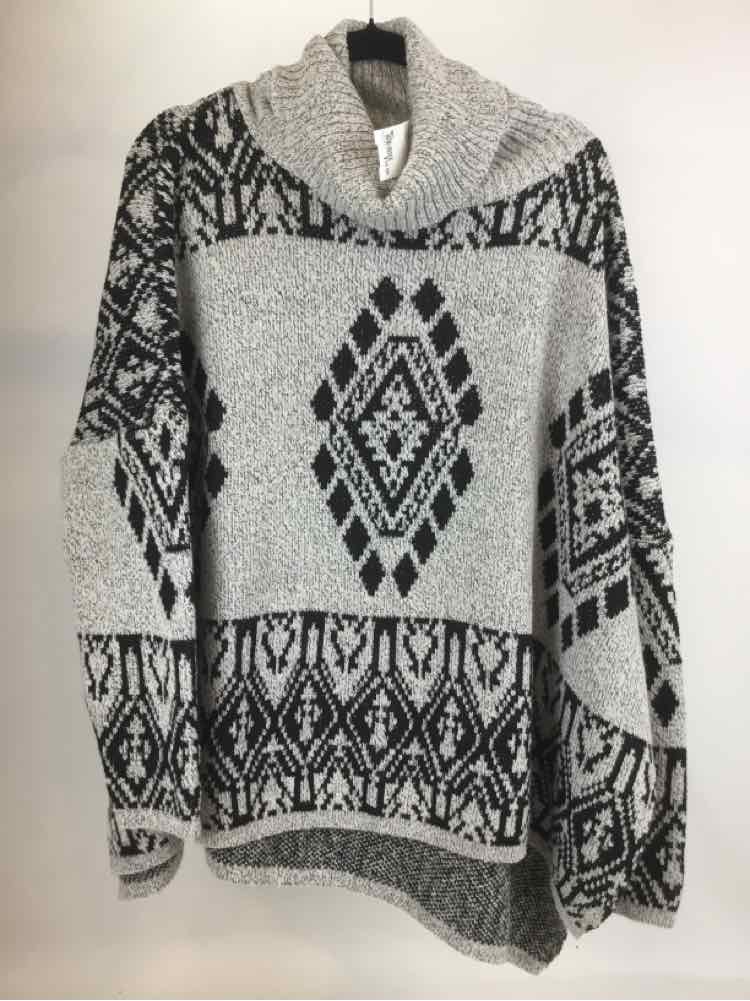 Andthewhy Size M/L Black/gray Cowl Neck Sweater
