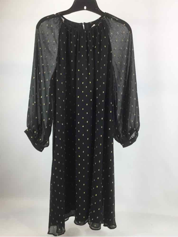 Ann Taylor Size M Black/gold sheer swing Knee Length Long Sleeve Dress