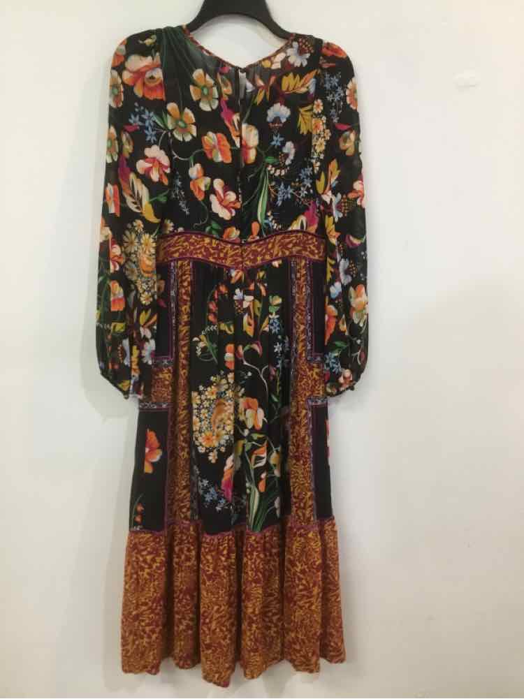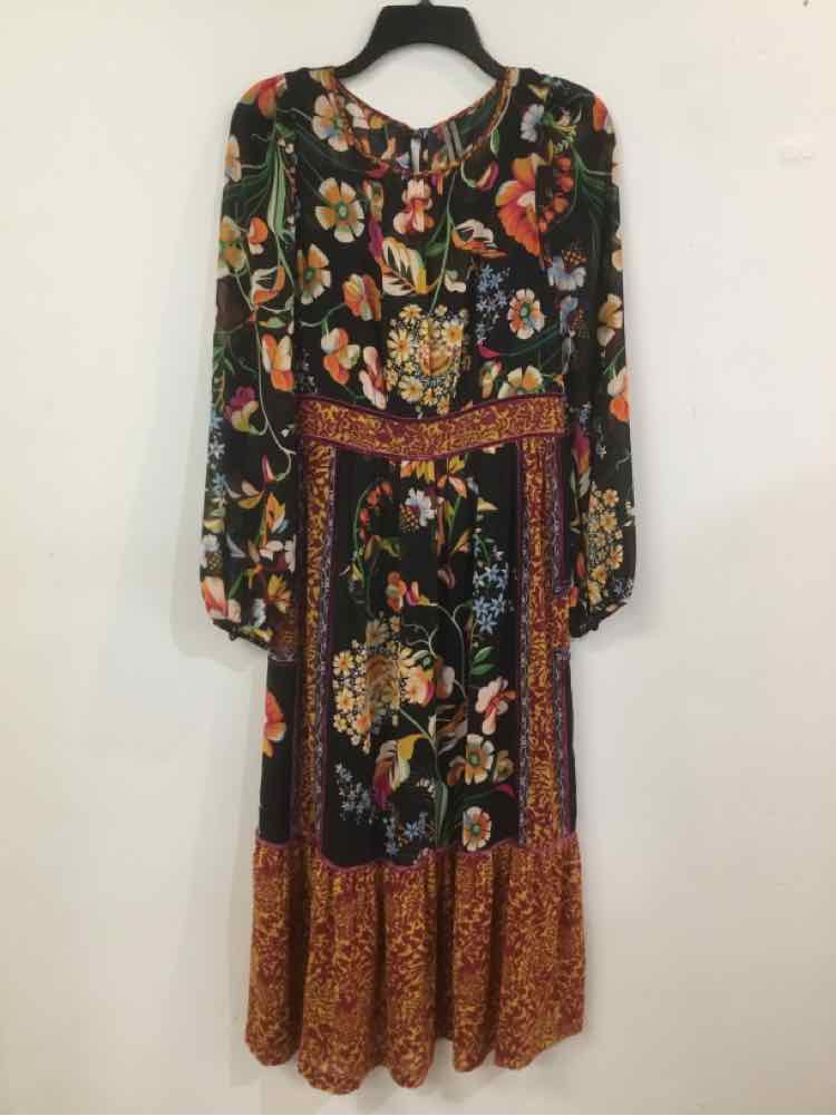 Anthropologie Size 4 Black/Multi Cloth Floral Lined Below Knee Long Sleeve Dress