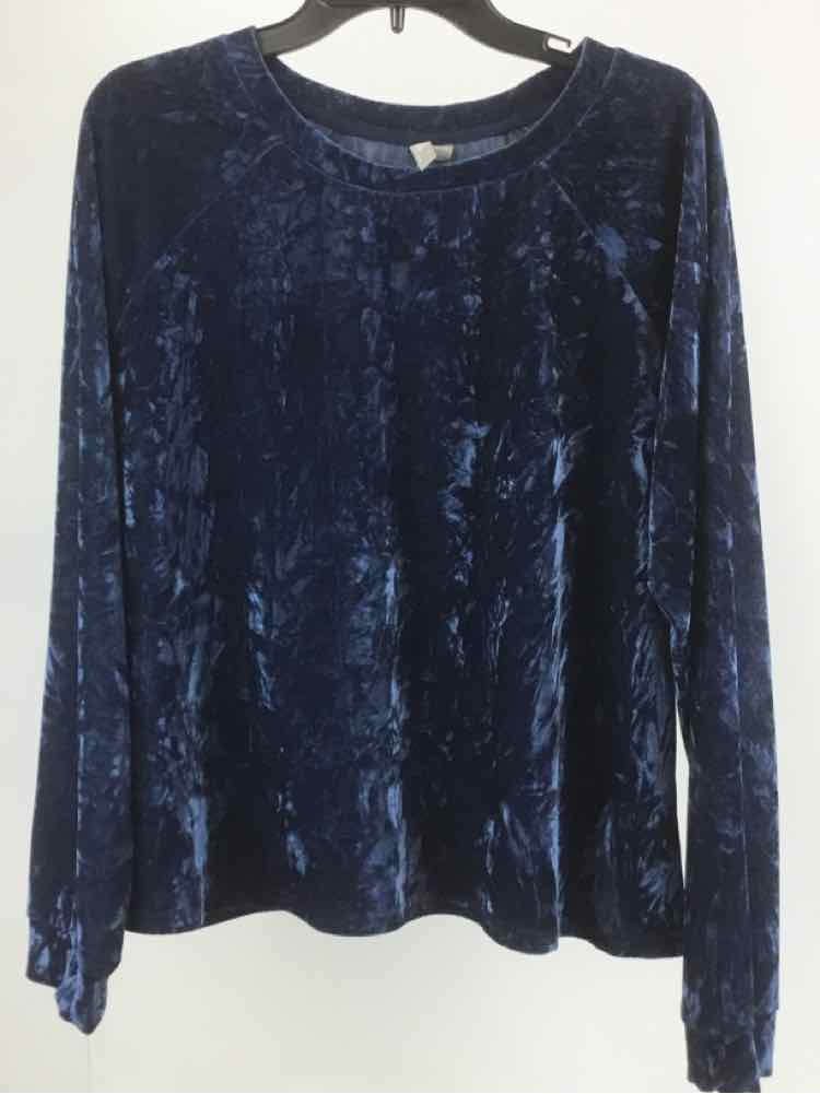 Asos Size 12 Blue Crushed Velvet Long Sleeve Top