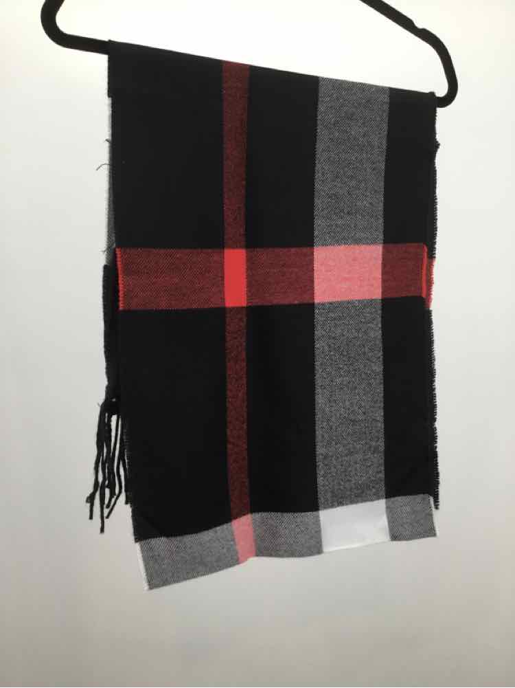 black/white/red Light Flannel Plaid Scarf