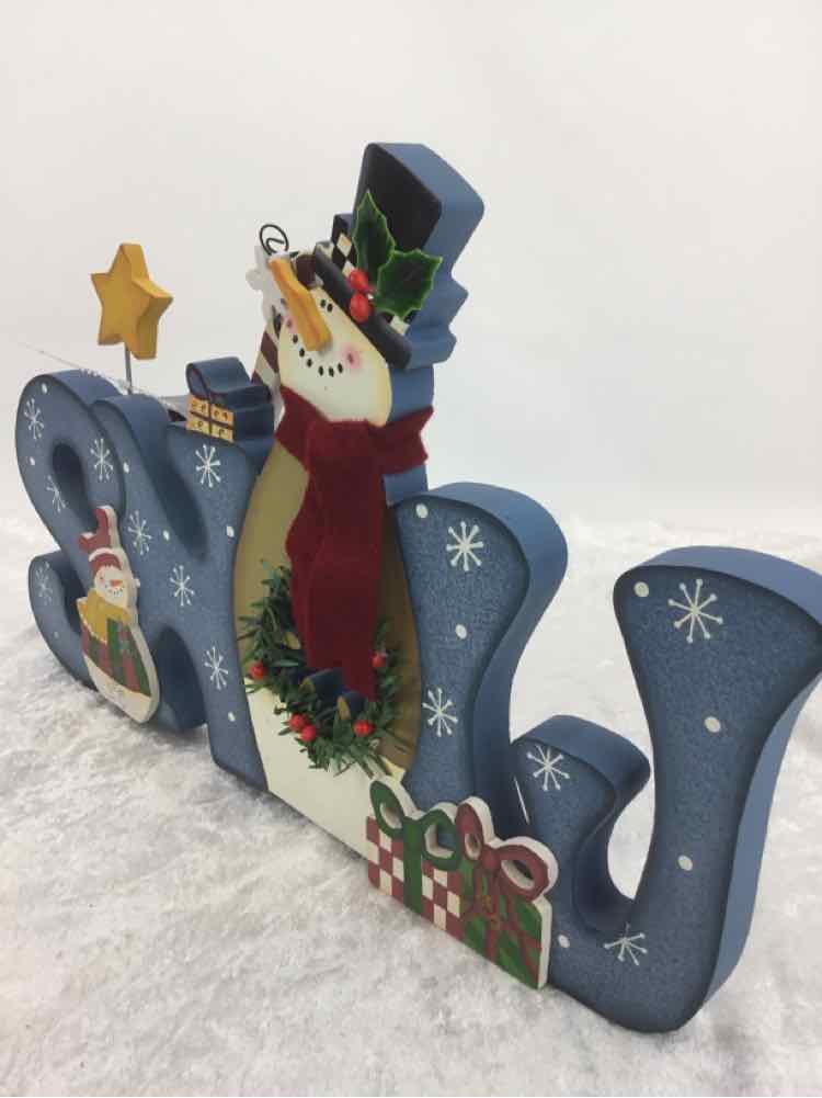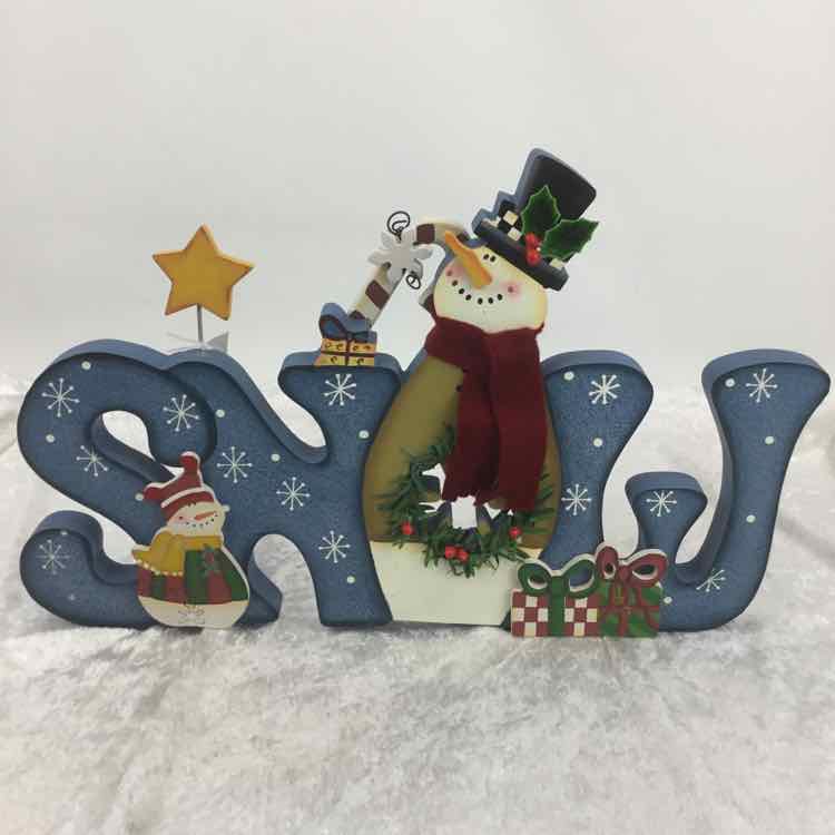 Blue/Multi Crazy Mountain Wood Snowmen Candle Holder Christmas Decor