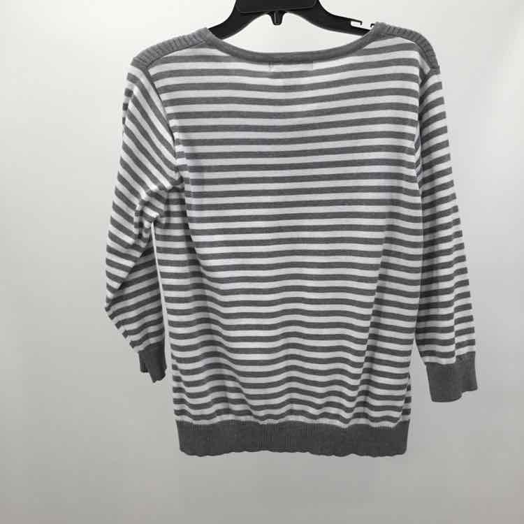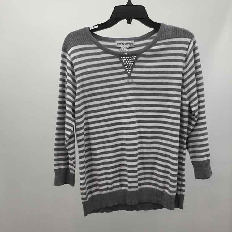 Cathy Daniels Size M gray/white Thin Knit Striped Bejewelled Crew Neck Sweater