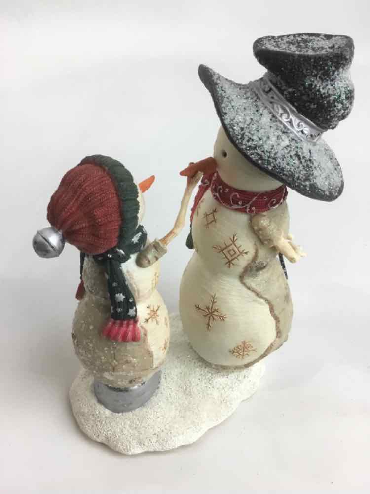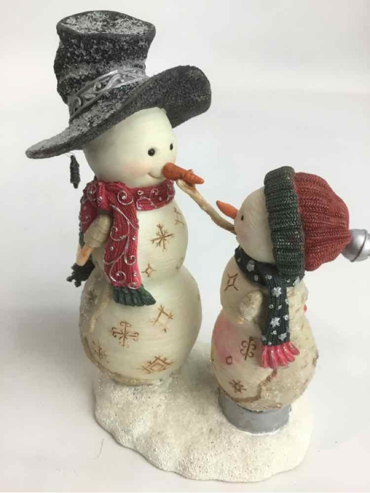 Cream/Black Birch Hearts Resin Snowmen Statue Christmas Decor