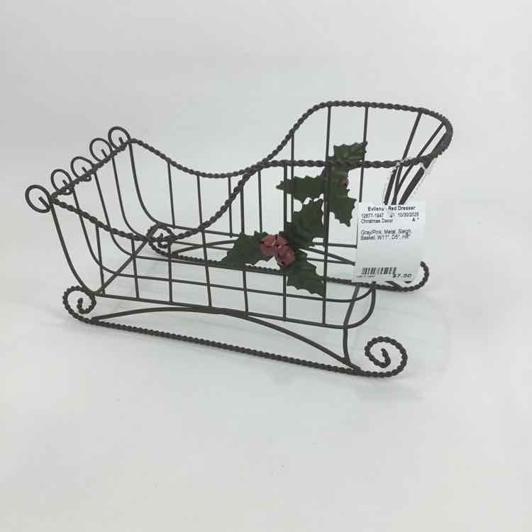 Gray/Pink Metal Sleigh Basket Christmas Decor