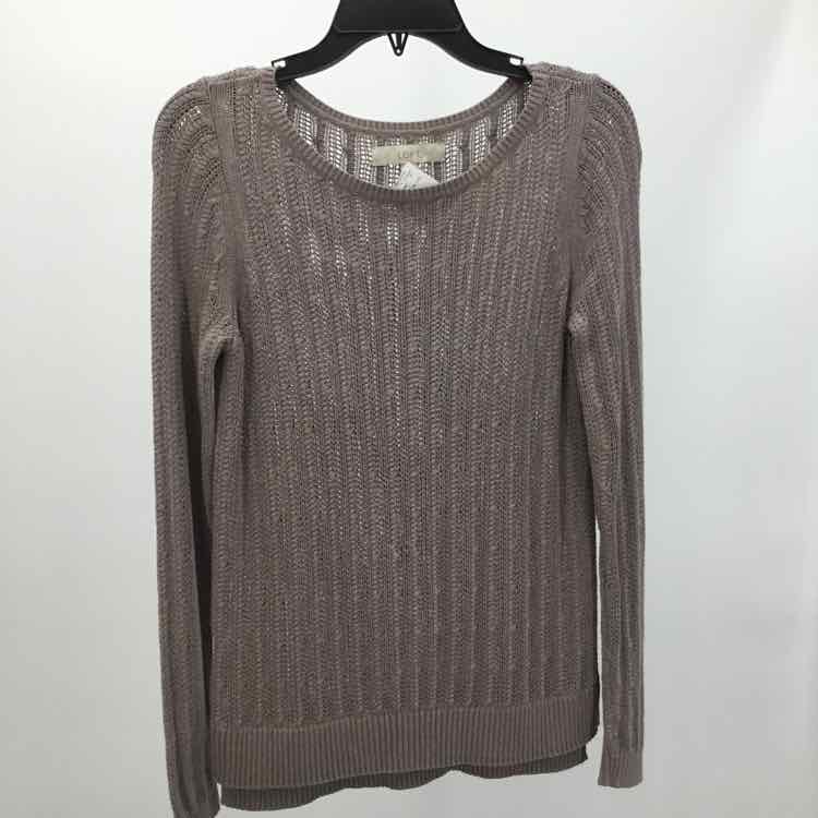 Loft Size S Taupe Open Weave Long Sleeve Crew Neck Sweater