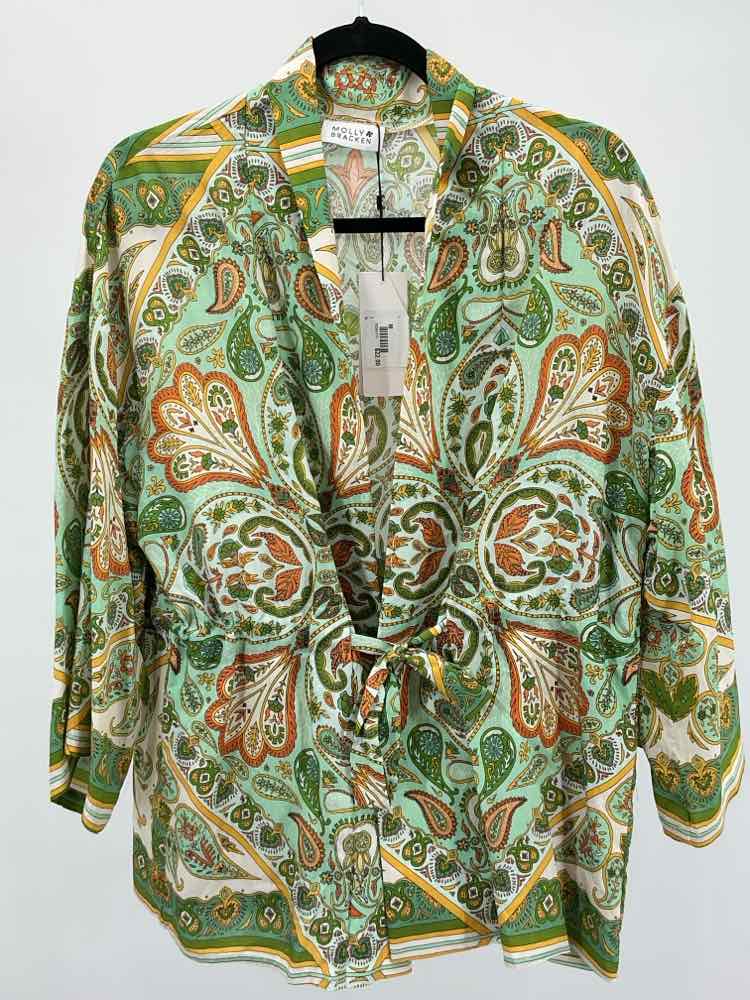Molly Bracken Size M Green/Orange NWOT Cloth Tie at Waist Jacket