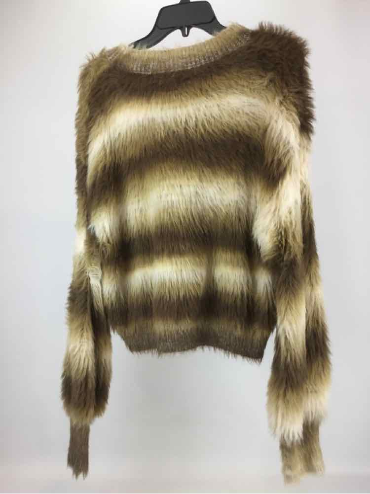 Molly Bracken Size S/M Brown/Tan NWOT Furry Ombre Long Sleeve Crew Neck Sweater