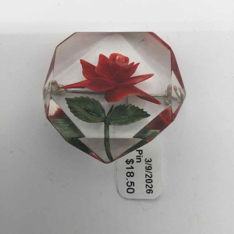 Red acrylic Rose carved Pin