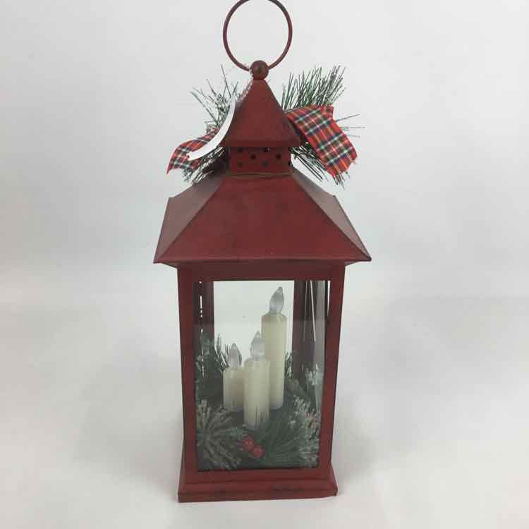 Red Metal/Glass Lantern Christmas Decor