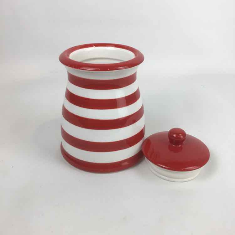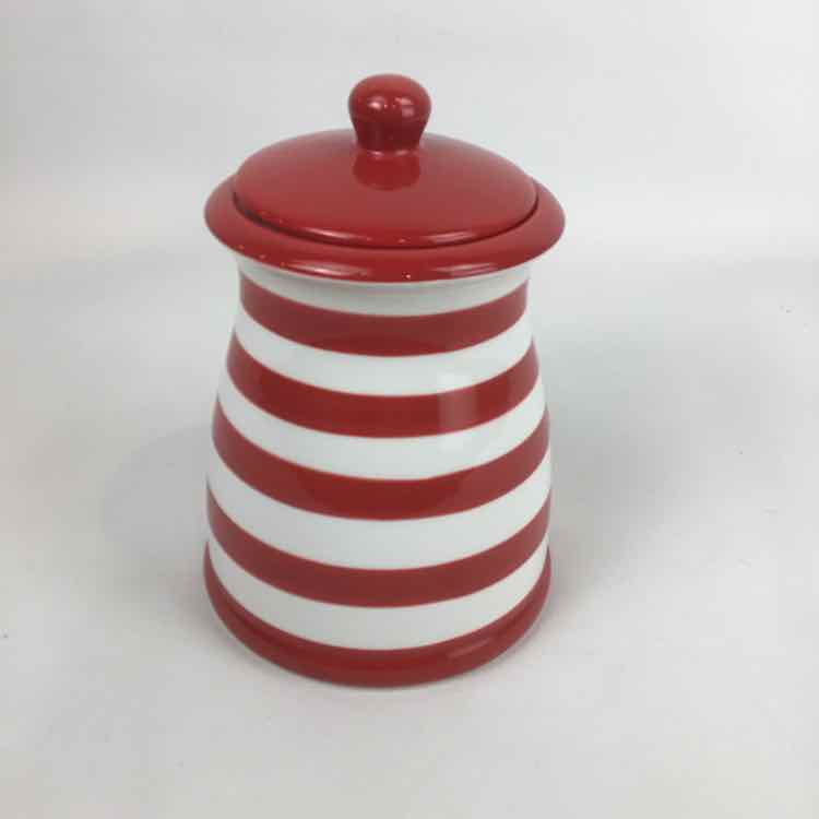 red/white Terramotto Ceramic Striped Cookie jar Christmas Decor