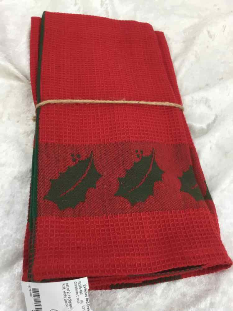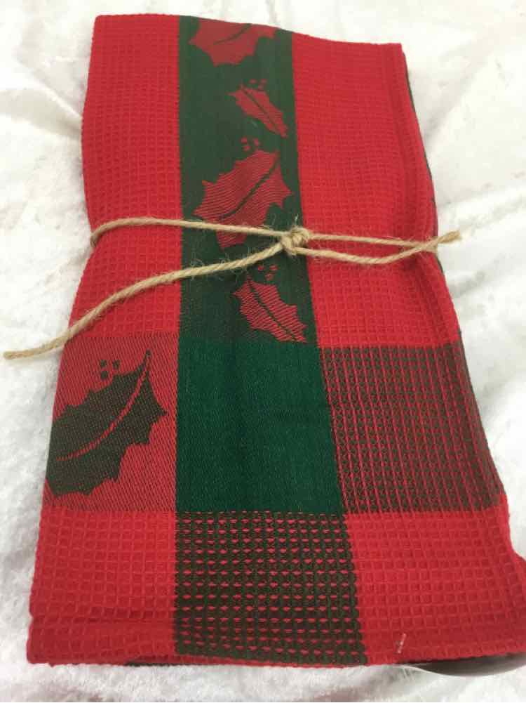 set of 2 red/green Waffle Knit Holly Berry Hand Towel Christmas Decor