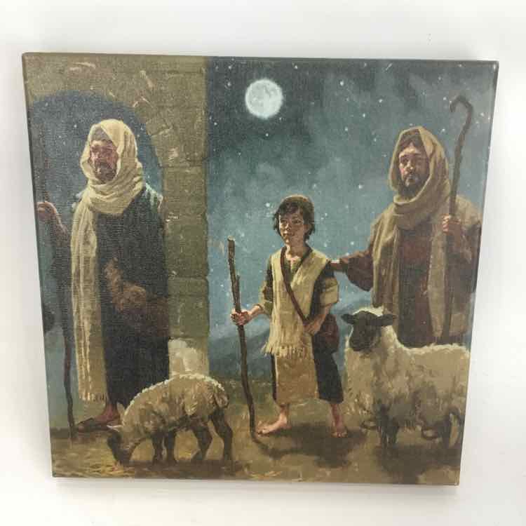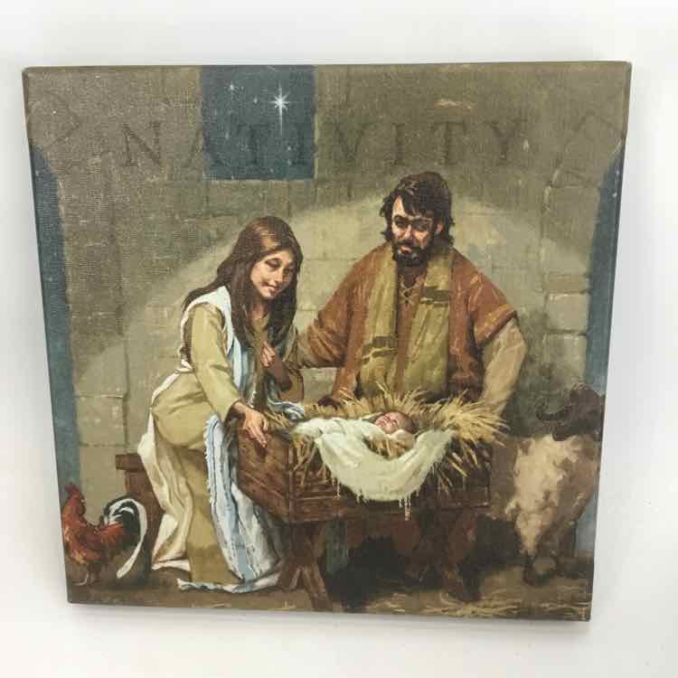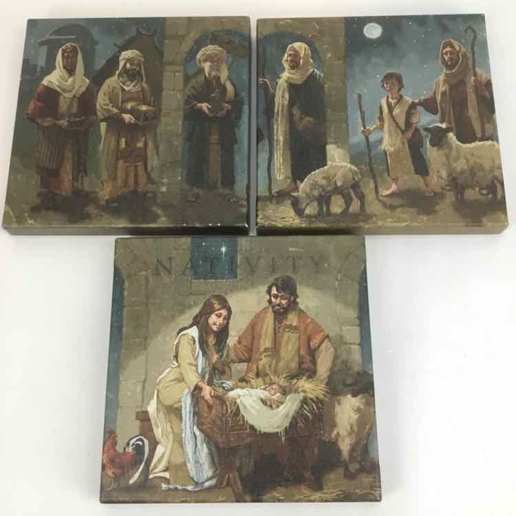 Set of 3 Green/Blue Canvas Nativity Christmas Decor