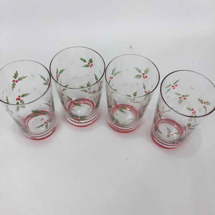 Set of 4 red/green Pfaltzgraff Glass Winterberry Tumbler Christmas Decor