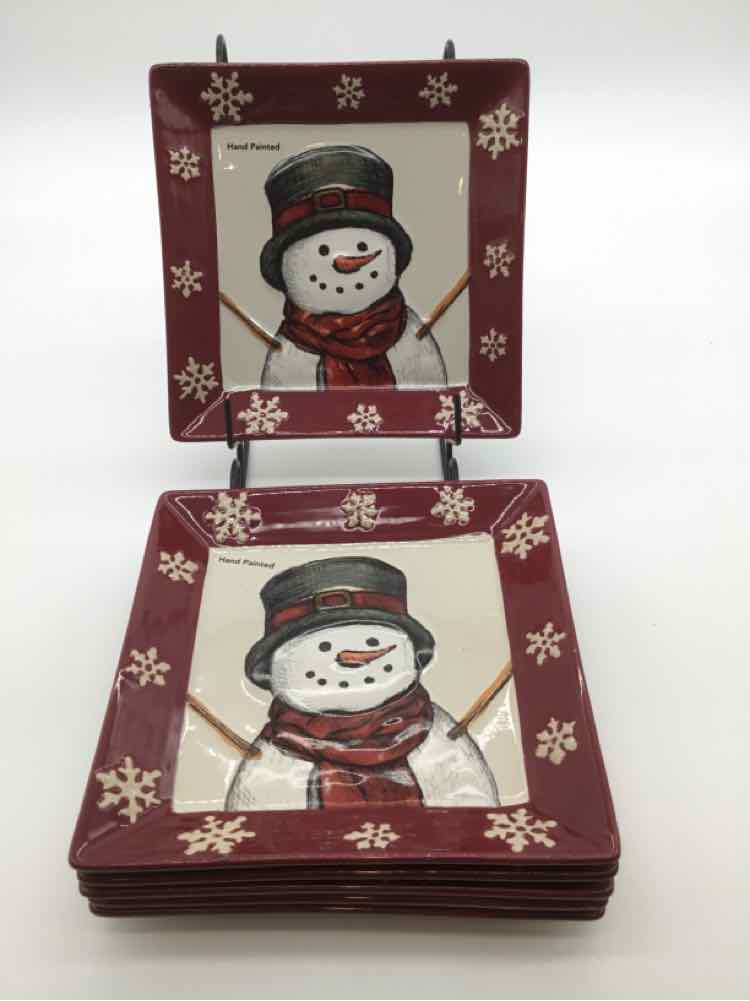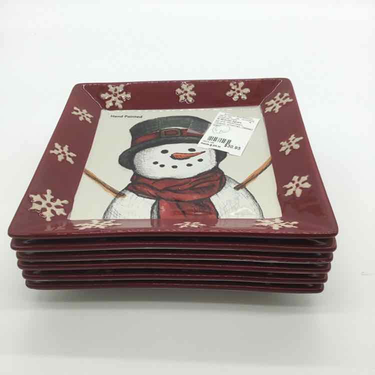 set of 6 Red/Cream St Nicholas Square Ceramic snowman Christmas Decor