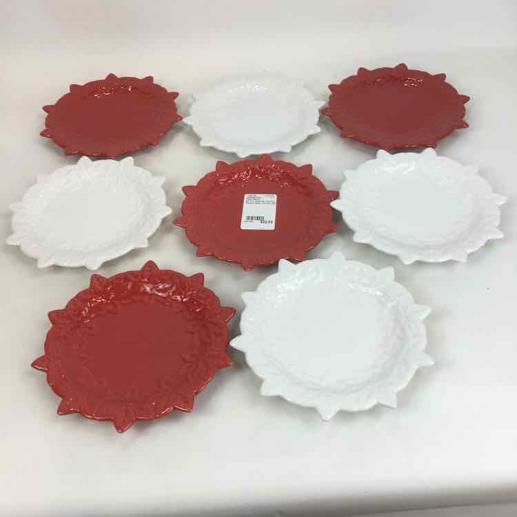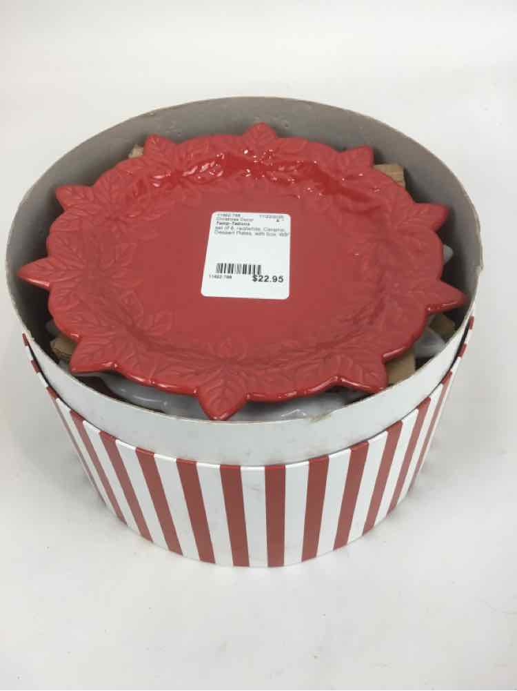 set of 8 red/white Temp-Tations Ceramic Dessert Plates with box Christmas Decor