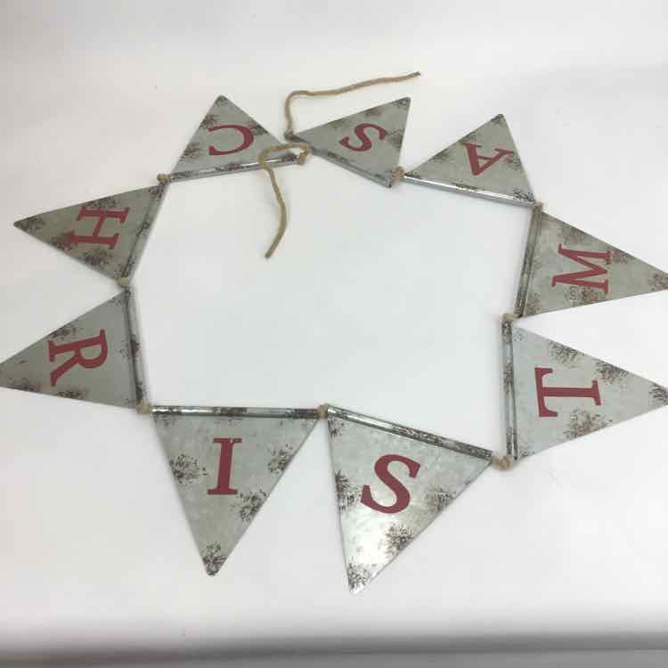 silver/red Galvanized Metal Christmas Banner Christmas Decor