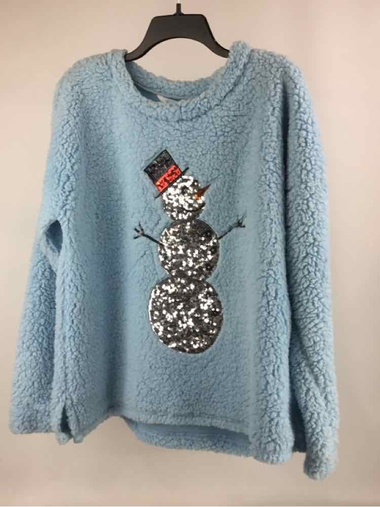 Time & Tru Size XXL Blue/silver Sherpa Snowman Top