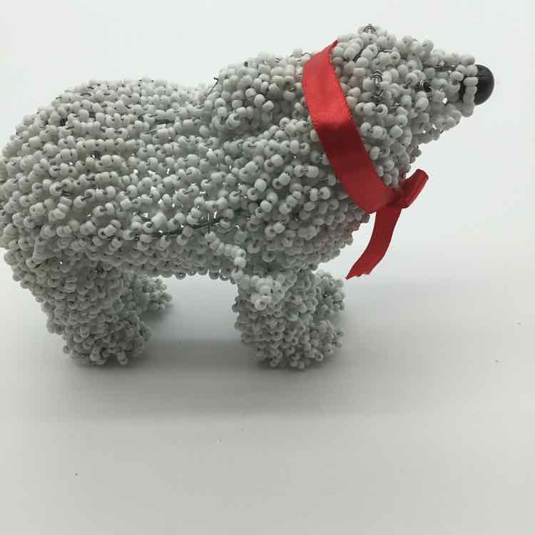 White Khutsala Beaded Polar Bear Christmas Decor
